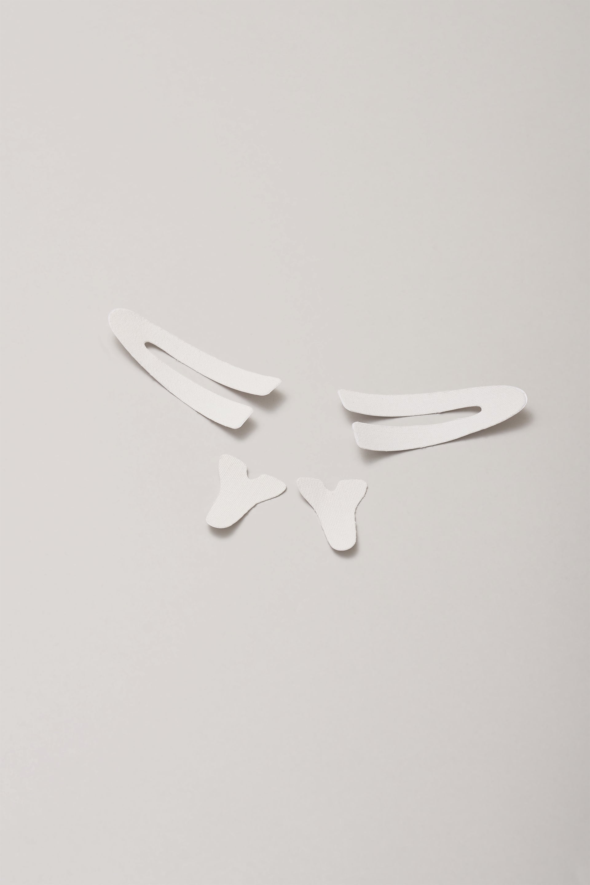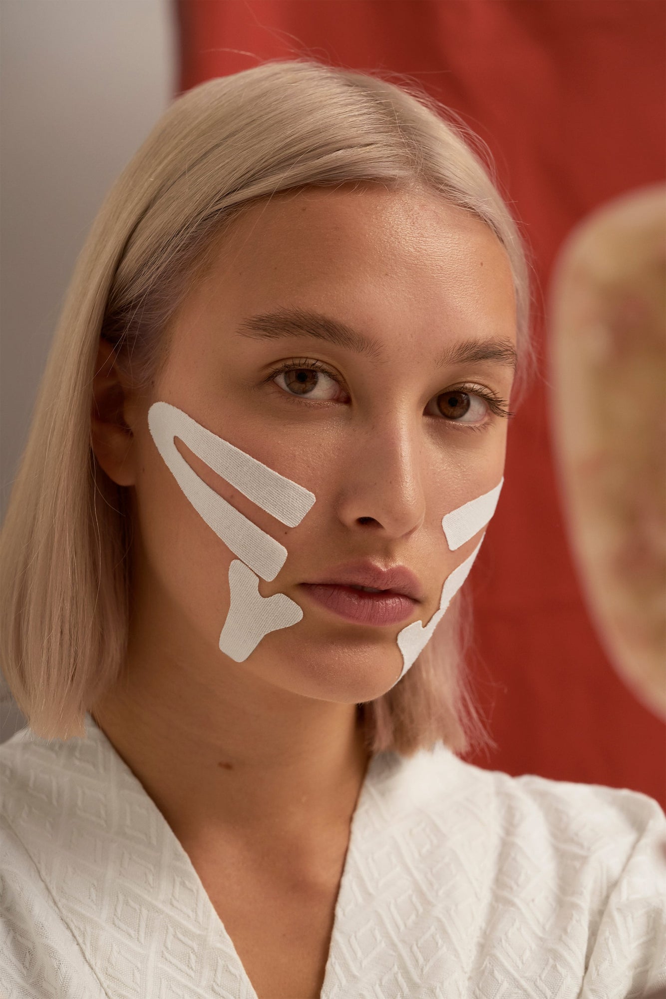 Le kit joues et bouche de la marque Lyfta contient quatre formes de rubans adhésifs prédécoupées et prêtes à poser. Conçues pour lifter l'apparence de la peau pendant la nuit, elles contribuent à définir les pommettes et à adoucir le relief des rides du sourire.