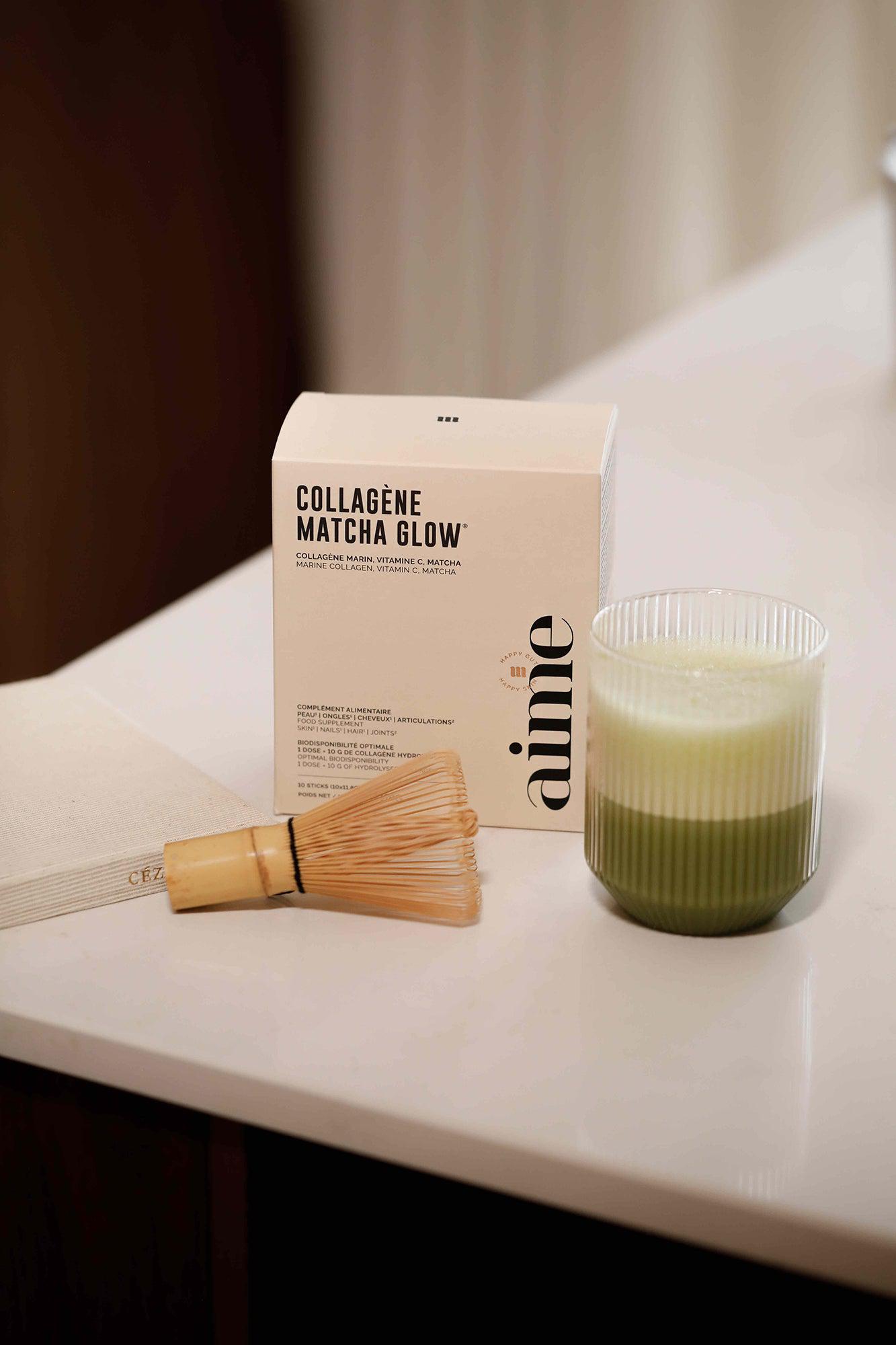 A food supplement to drink based on marine collagen and organic matcha.