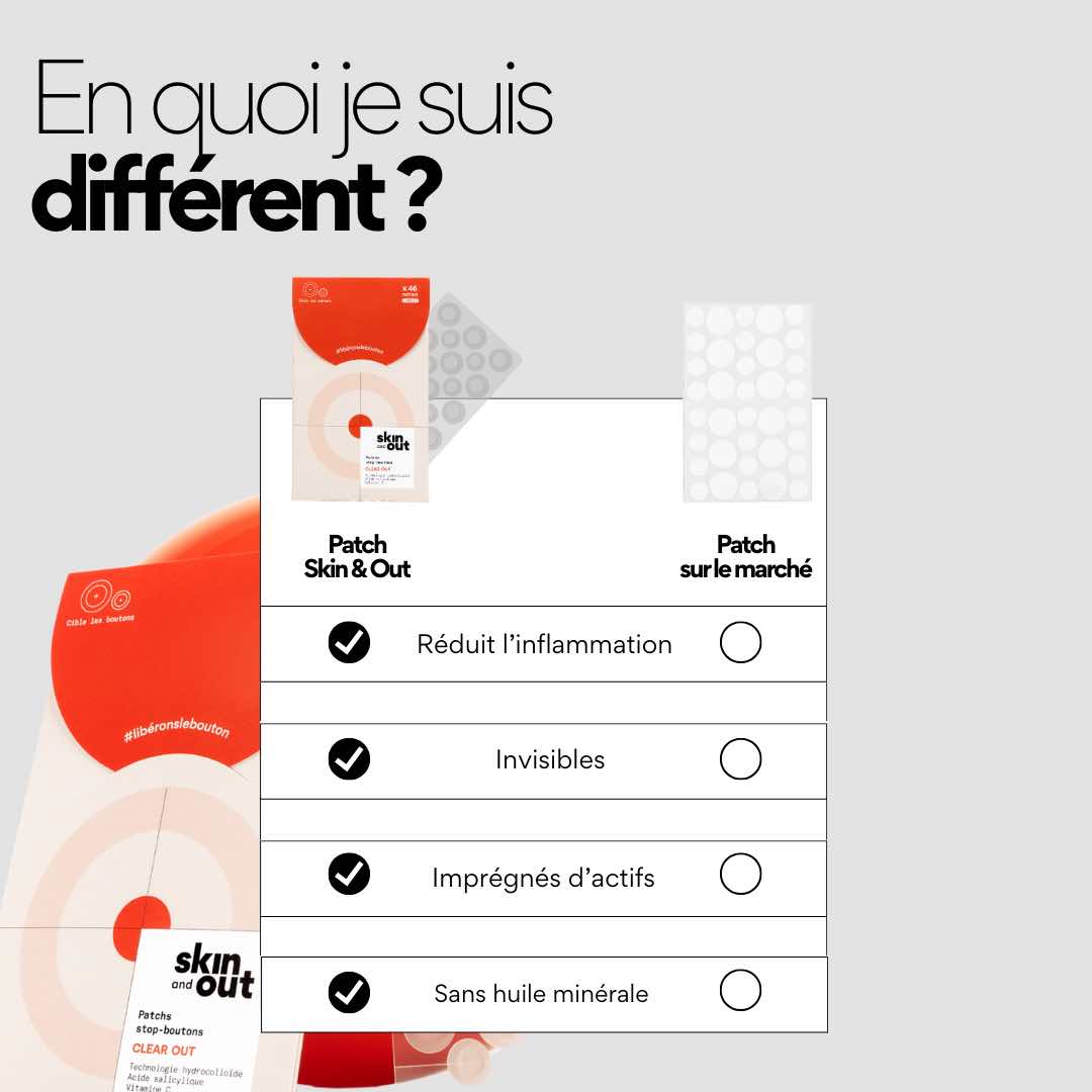 Le kit CLEART OUT de la marque Skin and Out contient un lot de patchs hydrocolloïdes pour les boutons des peaux à tendance acnéique. Sa technologie hydrocolloïde imprégnée d’actifs soin accélère la disparition des imperfections de façon discrète, avec un fini seconde peau qui rend le comédon ciblé presque invisible tout en le protégeant d’éventuelles agressions extérieures.