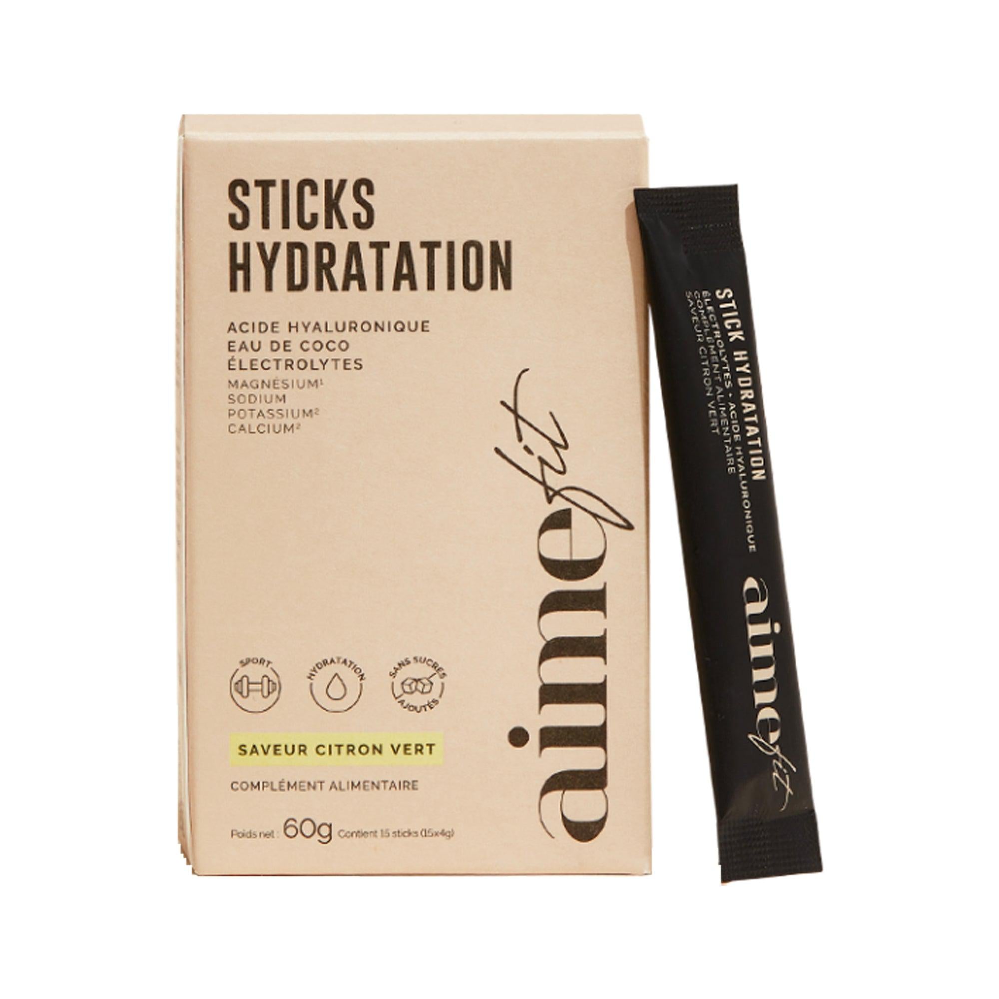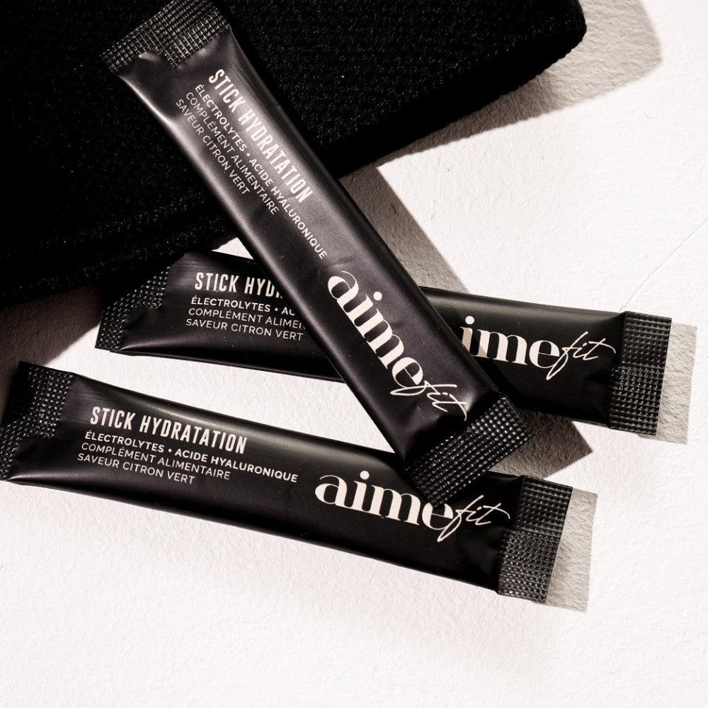 Aime Fit moisturizing sticks allow you to compose a drink rich in electrolytes (sodium, potassium, magnesium, calcium). They contain a powder to be diluted in water. They are designed to support physical recovery and prevent discomfort related to dehydration.