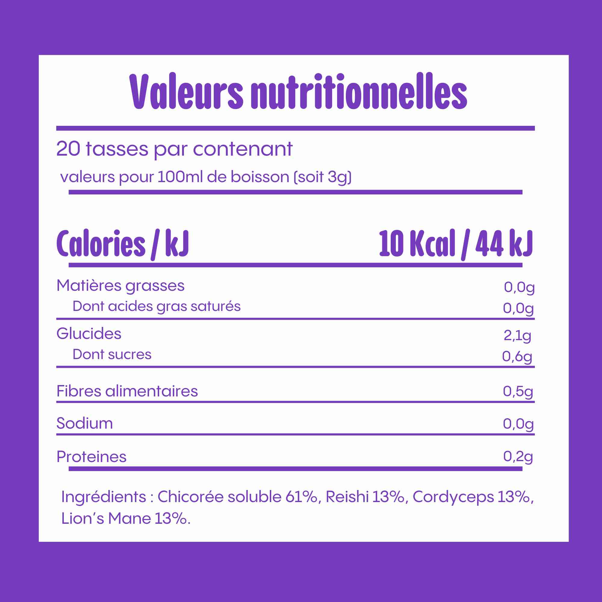 Chaque pot de 80 g de chicorée GLOW permet de réaliser environ 20 tasses de breuvage.